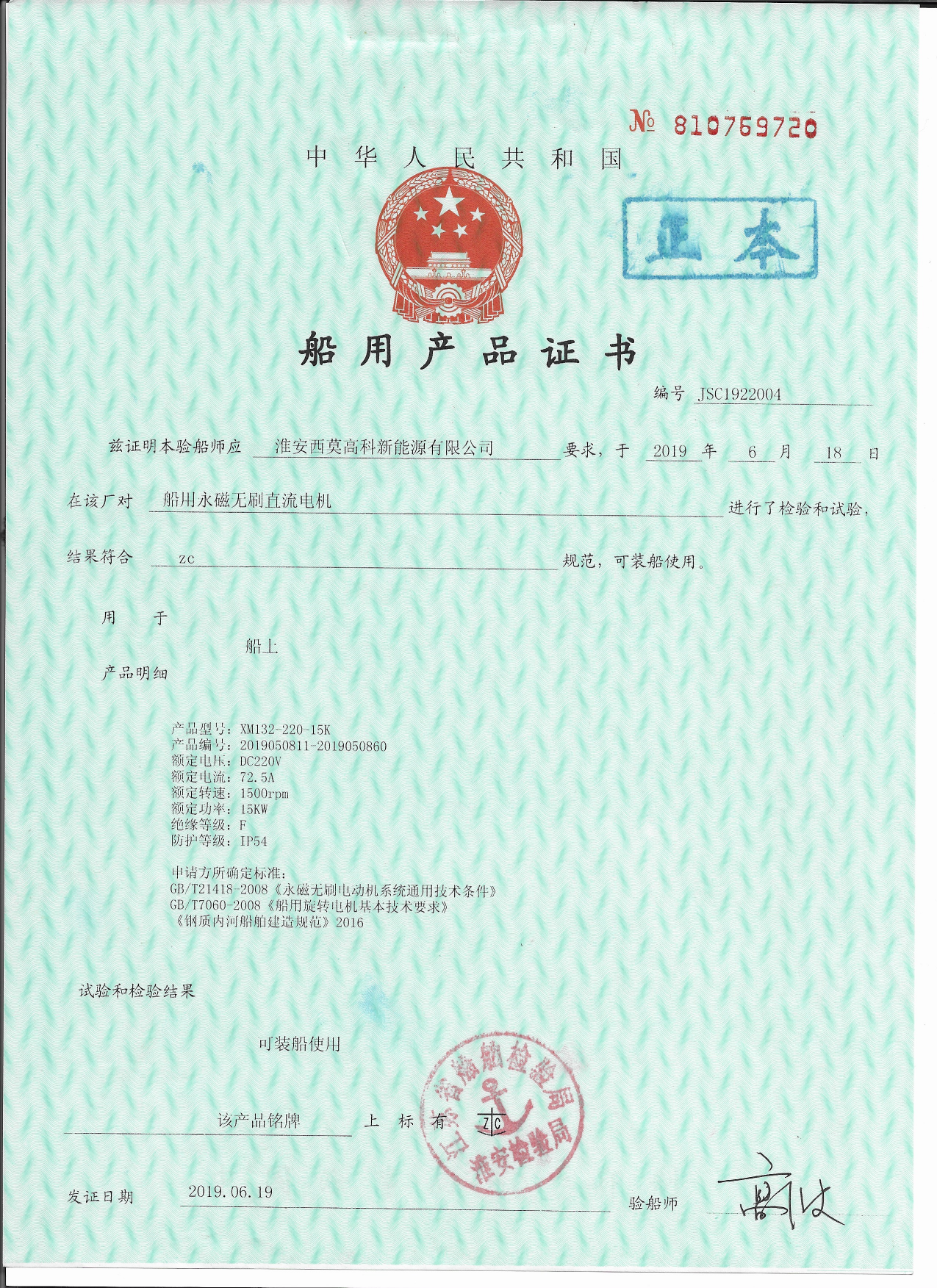永磁無刷直流電機(jī)船用產(chǎn)品證書 規(guī)格220V15KW1500RPM
